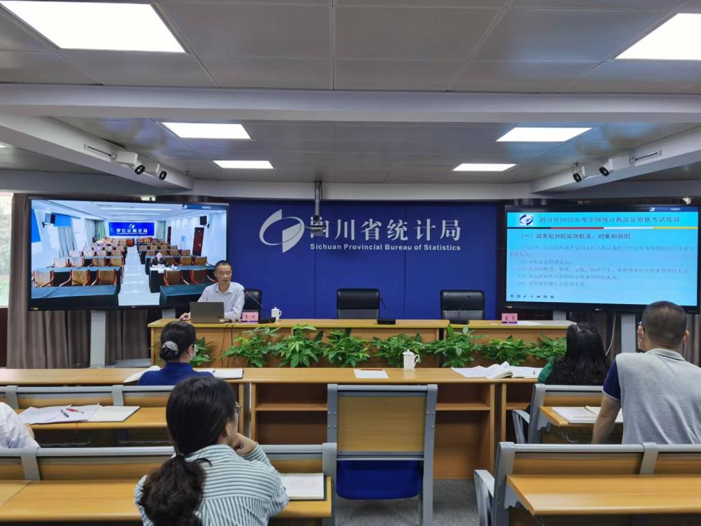 由于受疫情防控影响,本次培训工作采用线上模式进行,法规处积极组织全省执法考试骨干600余人通过四川省统计局视频会议系统进行考前线上培训及线上模拟考试工作,成都基地委派丛日玉、陶敏、李明三位老师分别就《统计执法监督检查知识》、《统计法律法规知识》、《统计违法行为、法律责任及现场执法实务和工作制度》进行了培训授课。