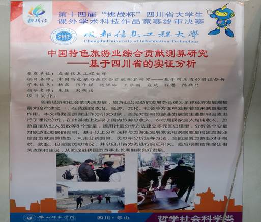 6月10日至12日,由中共四川省委组织部、共青团四川省委、四川省科学技术协会、四川省教育厅、四川省科学技术厅、四川省人力资源和社会保障厅、四川省学生联合会、乐山市人民政府共同主办,乐山师范学院承办的第14届“挑战杯”四川省大学生课外学术科技作品竞赛终审决赛在乐山举行,我院学生在比赛中表现出色,荣获本次终审决赛二等奖。