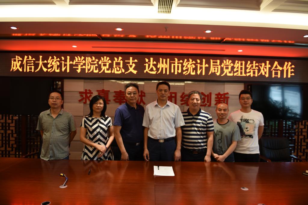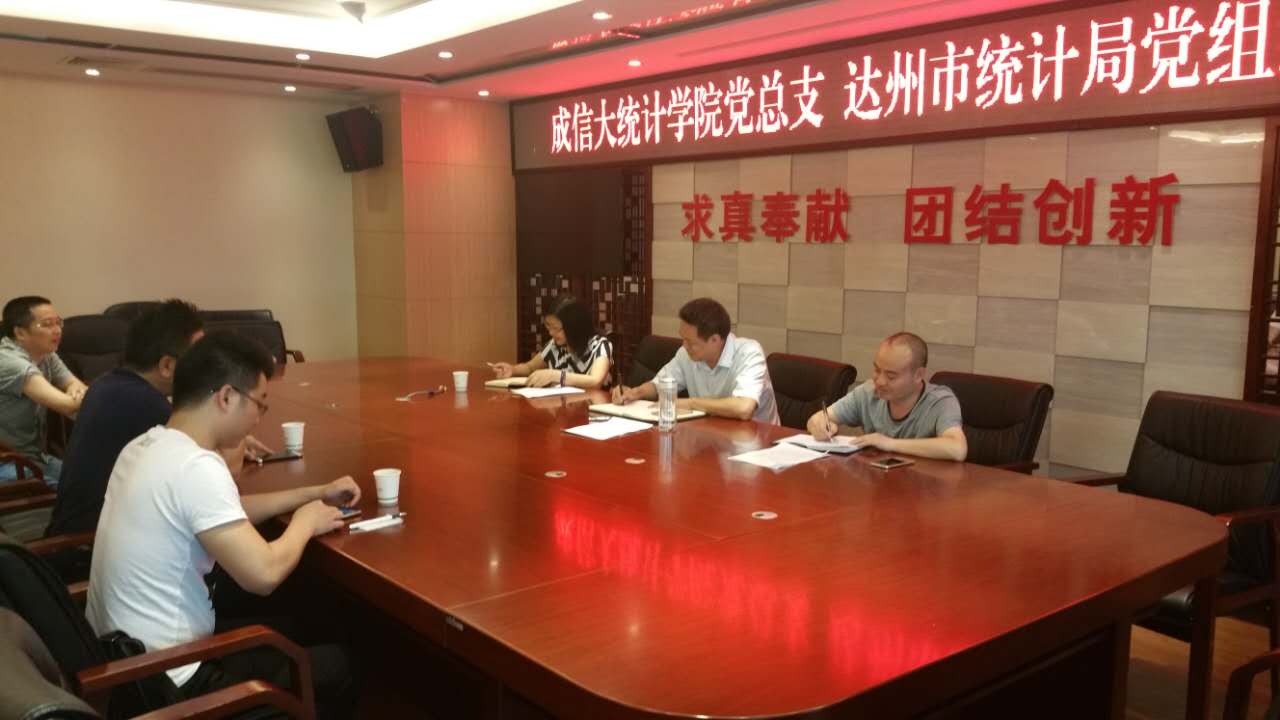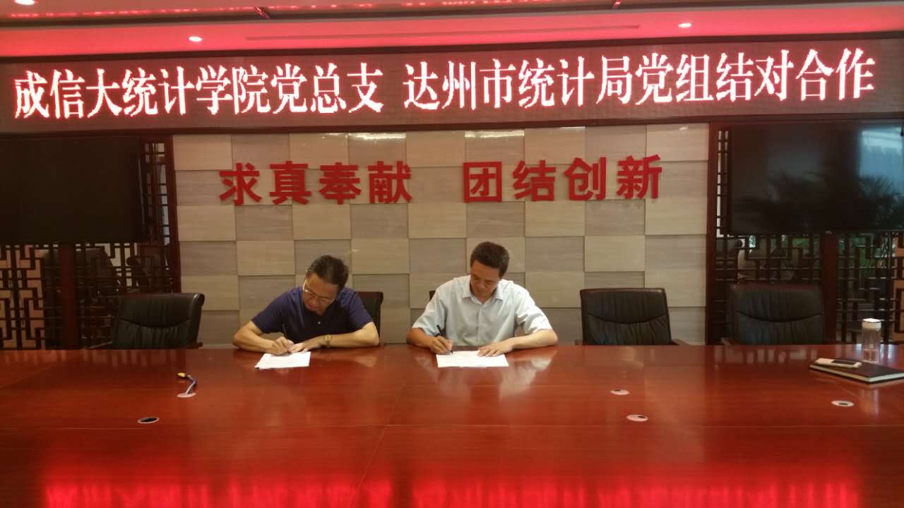 为加强与达州统计系统的交流与合作,2017年7月11日下午,williamhill中国官方网站党总支书记孙克常率队到达州市统计局,与达州市统计局党组签订了结对合作协议。党总支委员晏正春、许瑞,达州市统计局局长、党组书记李大兵,副局长柏丰、赵英及相关科室负责人出席签字仪式。