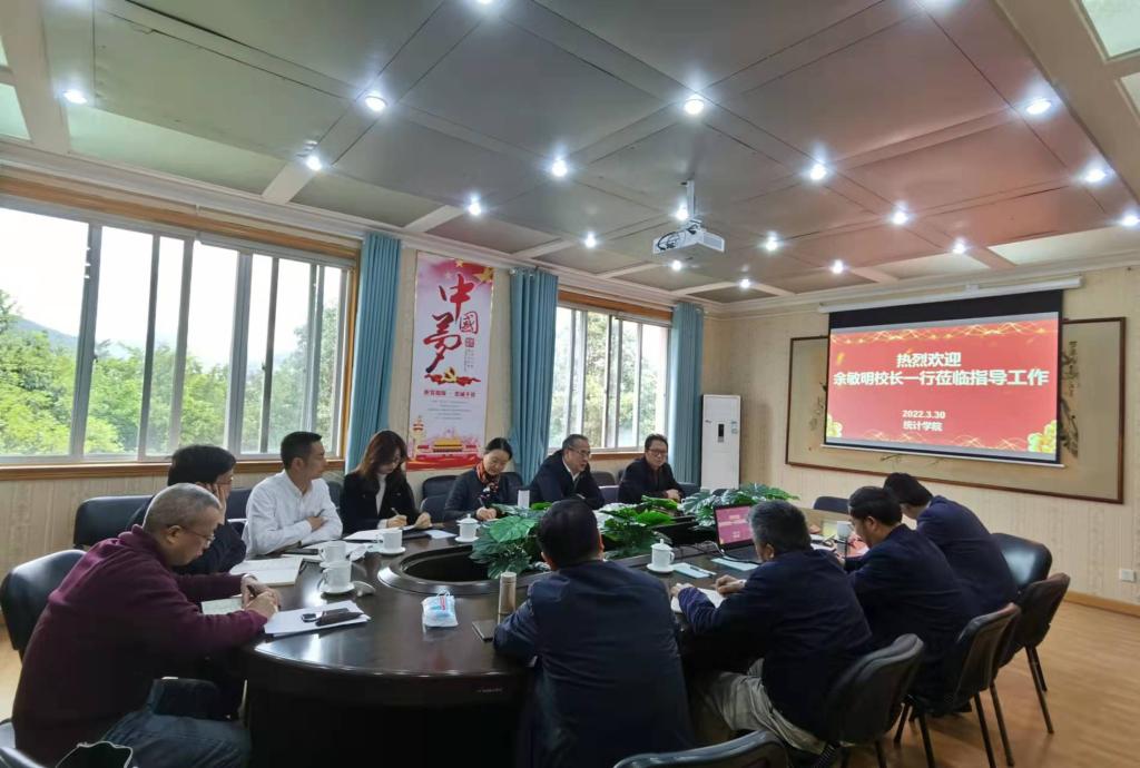余敏明在听取汇报后,首先肯定了学院近年来取得的建设成效,对下一步落实学院“十四五”规划提出了要求。他指出,williamhill中国官方网站有较为深厚的学科积淀和行业背景,要持续发挥好现有资源优势,扎根统计,探索“统计+行业+信息技术+数据平台”的特色发展道路,为政府咨询与决策、行业区域发展和满足人民群众对美好生活的需要提供优质服务。他强调,学院应加大优秀人才的引进力度,发挥好学科带头人的作用,切实加强团队建设,持续提高人才培养质量和服务社会能力,不断优化发展环境;要积极拓展行业资源,发挥桥梁纽带作用,集中力量形成品牌效应;要进一步加强与统计系统的联系,全面深化局校合作,努力做到“统计引领、扎根优势、拓展行业、协同创新”,为国家和四川经济社会发展做出应有贡献。