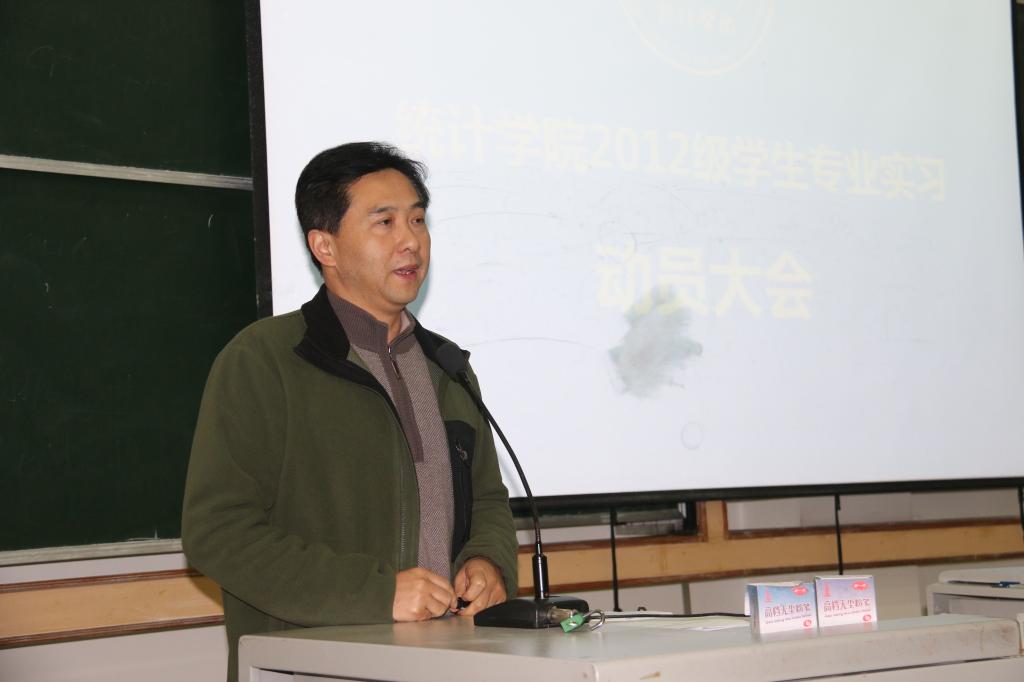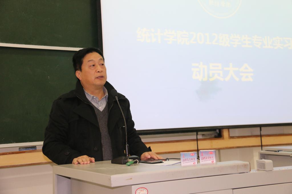 williamhill中国官方网站2012级本科生专业实习动员大会于11月28日下午2:00在龙泉校区3102教室举行。williamhill中国官方网站副院长蒋志华主持会议。国家统计局成都调查队专项调查处兰天云处长、相关带队老师、指导老师工作人员及学生140余人参加了动员大会。