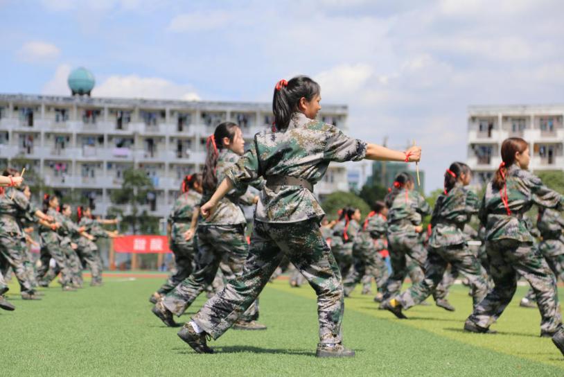 分列式开始,标兵就位,各学院方队依次通过主席台:他们坚定不移的眼神,整齐划一的步伐,将青年朝气展现的淋漓尽致。动如脱兔的匍匐刀;一招制敌的擒敌拳;刚柔并济的军体拳;都游刃有余,展现出了中国新一代青年面貌。
