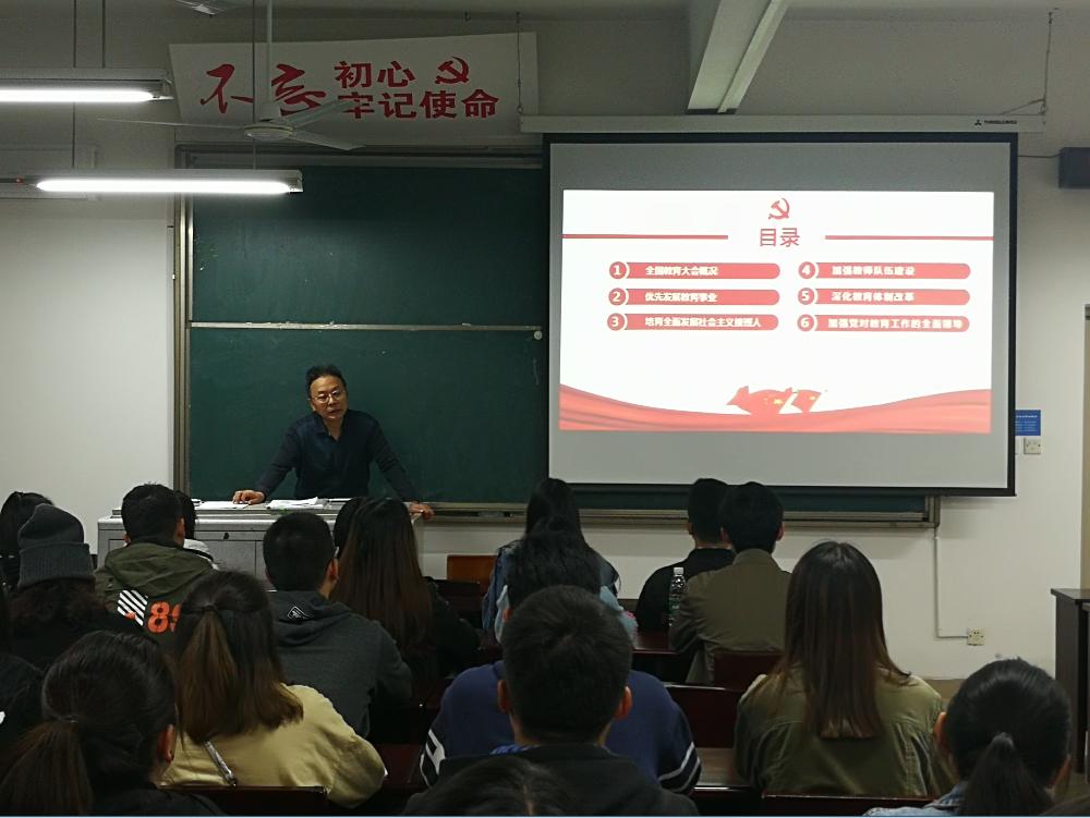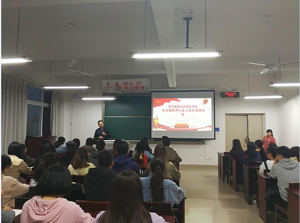 williamhill中国官方网站为学习贯彻习近平总书记在全国教育大会讲话精神,于10月19日下午组织全体教职工在学院四楼会议学习,10月24日晚组织全体学生党员及全体学生干部在第二教学楼2409教室学习,主持人分别为教工党支部书记丛日玉,学生党支部书记许瑞,主讲人为williamhill中国官方网站党总支书记孙克常。