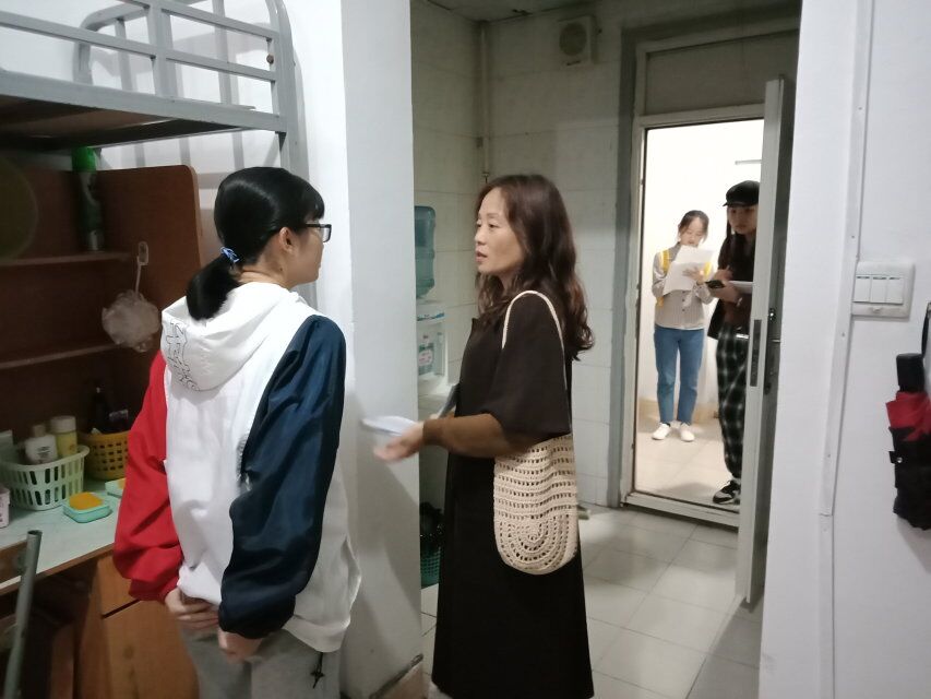 随后,孙克常与许瑞带队走访男生寝室,邹红梅带队走访女生寝室。各位老师在检查寝室过程中,发现存在的问题,要求及时整改,着重强调寝室卫生问题,提出要积极参与到寝室文化节,认真装扮寝室,让寝室适当增加亮色,布置出家的温馨感。同时,还询问了同学们学业方面的情况,及时了解同学们的困惑、疑问,鼓励他们努力学习。