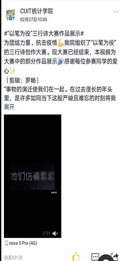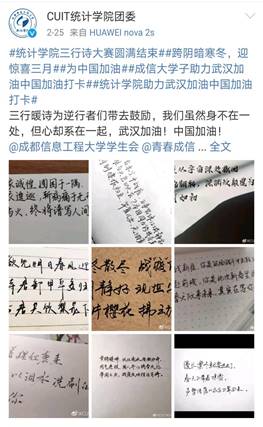 一.williamhill中国官方网站团委开展“以笔战疫”为主题的三行诗线上活动