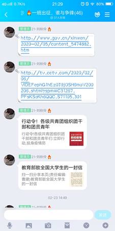 在疫情刚开始的时候,许多人尚且对疫情不甚了解,为引导同学们做好特殊时期的自我保护和学习提升,政统171团支部、国贸171团支部、国贸172团支部、金工171团支部、金工172团支部、金保181团支部、统计181团支部、金工181团支部、金工182团支部、统计191团支部、统计192团支部、经统192团支部、金工192团支部均开展线上防疫主题班会活动,通过qq视频、腾讯课堂等媒介向同学们宣传疫情知识,讲述了面对疫情,涵养健康的心态、保持理性冷静的重要性,并要求大家加强自我及家人的防护意识并关注自身心理健康。