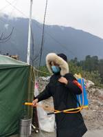 金保171班白玛央宗,在加强自身防护的前提下,作为志愿者积极参与了村里的防控工作。西藏自治区林芝市察隅县,虽为一般地区,但村里的防控宣传、清洁消毒与轮班执勤的工作等一个都没少。执勤、防疫消毒是每天必做的事情,积极动员村民们勤洗手,多通风,少聚集,戴口罩。为防止防控期间一些不实言论的传播,我们及时将官方信息传达给村民,引导村民不信谣、不传谣。