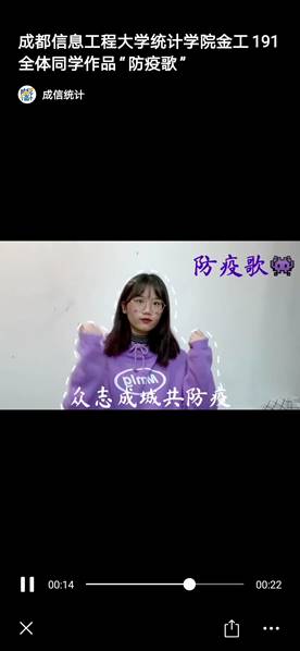 此次活动提高了成信学子对肺炎疫情的关注度,让学生切实地参与到肺炎防治活动中来。整个活动参与学院覆盖率达80%,线上参与人数共计400余人。