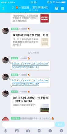 全院学生听从安排,配合教师做好“在线学习”准备,上课过程中积极、主动,课后及时反馈问题,对老师的教学提出客观的建议。