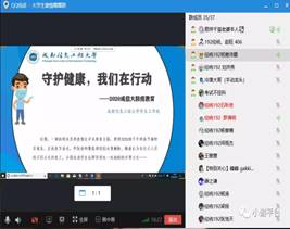 教师们在雨课堂、云课堂、慕课、教学网、视频会议、QQ群、微信群等平台,组织线上教学活动,线上教学组织有序、精神饱满,充分展现了老师们的风采,学生在线学习参与度高。同时,学院全体学生根据课程教学计划安排,密切关注学校、学院的各类教学平台上发布的各种信息,注意接收学院学生科通过微信或邮件发布的各项通知。班级负责人及时与任课教师取得联系,按照任课教师的要求做好每一门课程的平台安装和相应群的建立和加入。