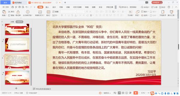 3月31日上午,williamhill中国官方网站,William希尔官网入口学生一支部组织全体党员以线上学习的方式,开展了学习“习近平总书记给北京大学援鄂医疗队全体‘90后’党员的回信”精神活动,此次学习大会由学生党支部书记许瑞老师组织,会上党员同志们积极回应认真学习该精神。要求以学习回信为契机,以骨干带全员,最大限度地发挥支部的战斗堡垒作用,为打赢此次疫情防控阻击战贡献青春力量。