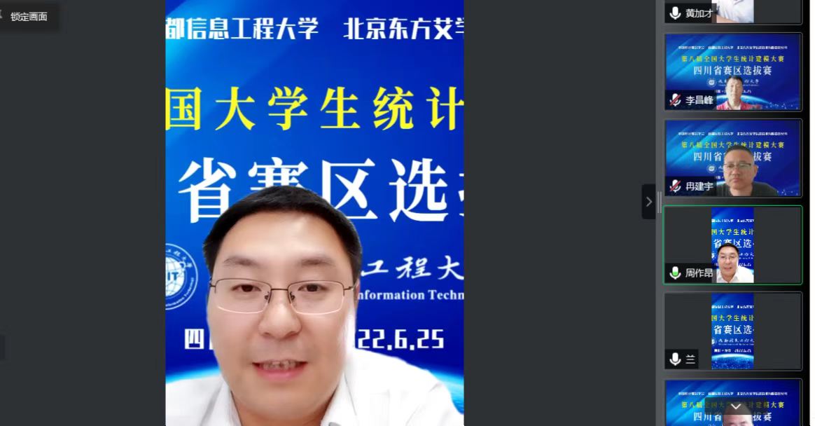 2022年6月25日,经过6个多小时的激烈角逐,第八届全国大学生统计建模大赛四川赛区选拔赛圆满闭幕。全国大学生统计建模大赛旨在倡导大学生学习统计知识,应用统计技能,聚焦经济社会发展热点难点问题,提高大学生数据挖掘、数据分析、运用统计方法及计算机技术处理数据的能力,加强创新思维意识,助力推进统计现代化改革。本届大赛四川赛区选拔赛由中国统计教育学会、教育部高等学校统计学类专业教学指导委员会、全国应用统计专业学位研究生教育指导委员会联合主办,williamhill中国官方网站承办,中国政府统计研究中心和北京东方艾学信息技术有限责任公司协办。本次大赛特别邀请了西安财经大学朱钰教授担任大赛的评审委员会主任,同时邀请国家统计局四川调查总队副总队长黄加才、四川省统计科学研究所所长周作昂、南京财经大学李昌峰教授、重庆三峡学院冉建宇教授担任大赛的评委。大赛由williamhill中国官方网站,William希尔官网入口王臣、黄兰老师共同主持。