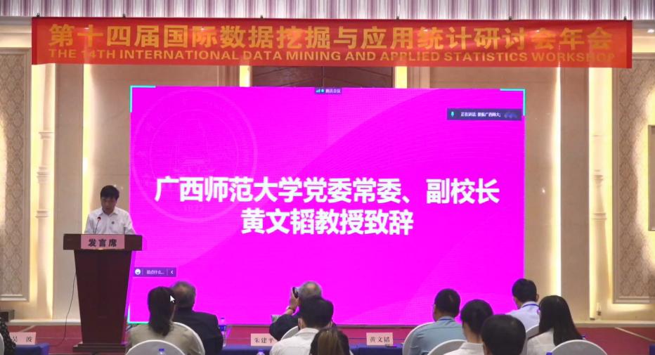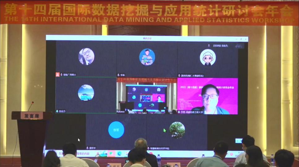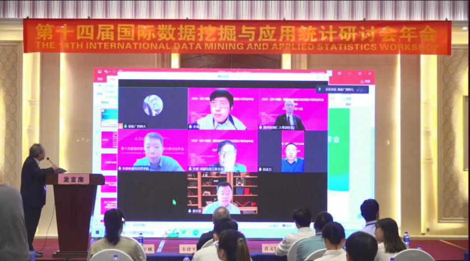 11月12日,由中国商业统计学会数据科学与商业智能分会、厦门大学管理学院、williamhill中国官方网站,William希尔官网入口、台湾辅仁大学、美国耶鲁大学生物统计系、广西师范大学联合主办,广西师范大学数学与williamhill中国官方网站、中国政府统计研究中心、厦门大学数据挖掘研究中心、厦门市统计学会联合承办的2022(第十四届)国际数据挖掘与应用统计研讨会年会在广西桂林顺利闭幕。本次会议主题是“开拓统计应用新界面,加快数据要素新发展”。我院副院长滕磊和王臣老师出席了本次线下研讨会年会。由于疫情原因,会议采取线下结合线上直播的形式进行,其中线上直播高达2.85万余人参与。