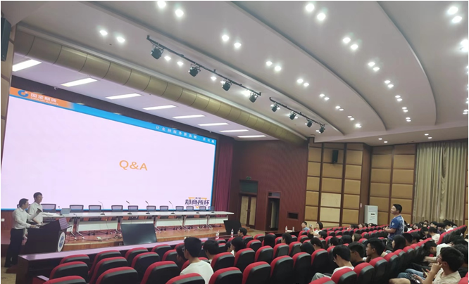 在交流环节,同学们就比赛的具体事项、期货和期权的选择等与戴小红副所长进行了积极深入的交流。最后,戴小红副所长就可提供的实习招聘的岗位及人数等方面进行了介绍,诚邀大家参加。