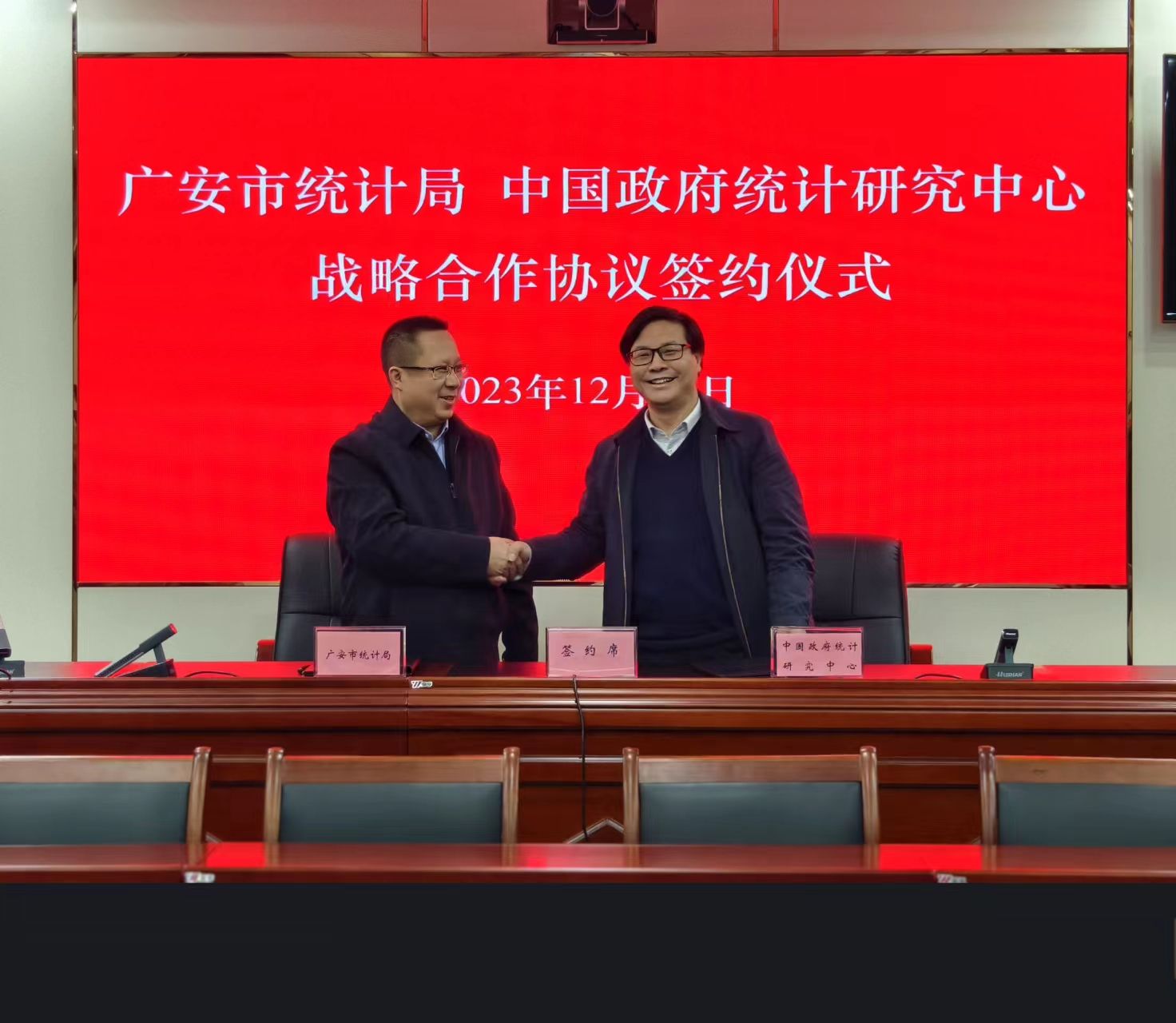 为贯彻落实国家统计局与四川省人民政府签署的共建williamhill中国官方网站协议精神,进一步促进统计学科高质量发展,加强与地方政府和统计系统的合作交流。12月15日-16日,学院院长李勇教授带队一行5人分别赴广安市统计局、广安区人民政府、岳池县人民政府开展座谈交流,并与广安市统计局签订中国政府统计研究中心战略合作协议。