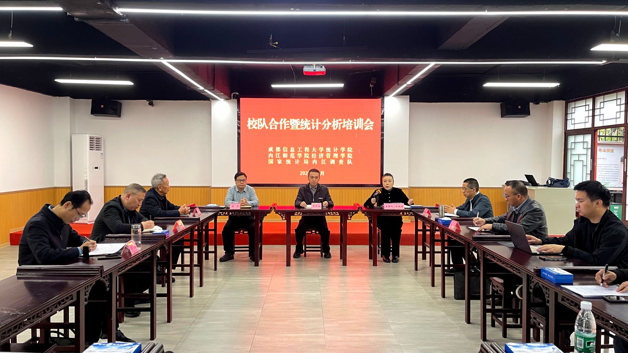 11月13日,williamhill中国官方网站,William希尔官网入口、内江师范学院经济与管理学院与国家统计局内江调查队,在国家调查实践基地联合召开校队合作暨统计分析培训会。本次会议以“深化校队合作、赋能统计高质量发展”为主题,三方齐聚一堂,共商合作新路径、共话发展新蓝图。国家统计局四川调查总队党组成员、总统计师夏龙生与会指导。
