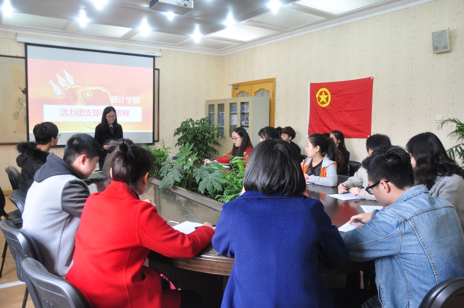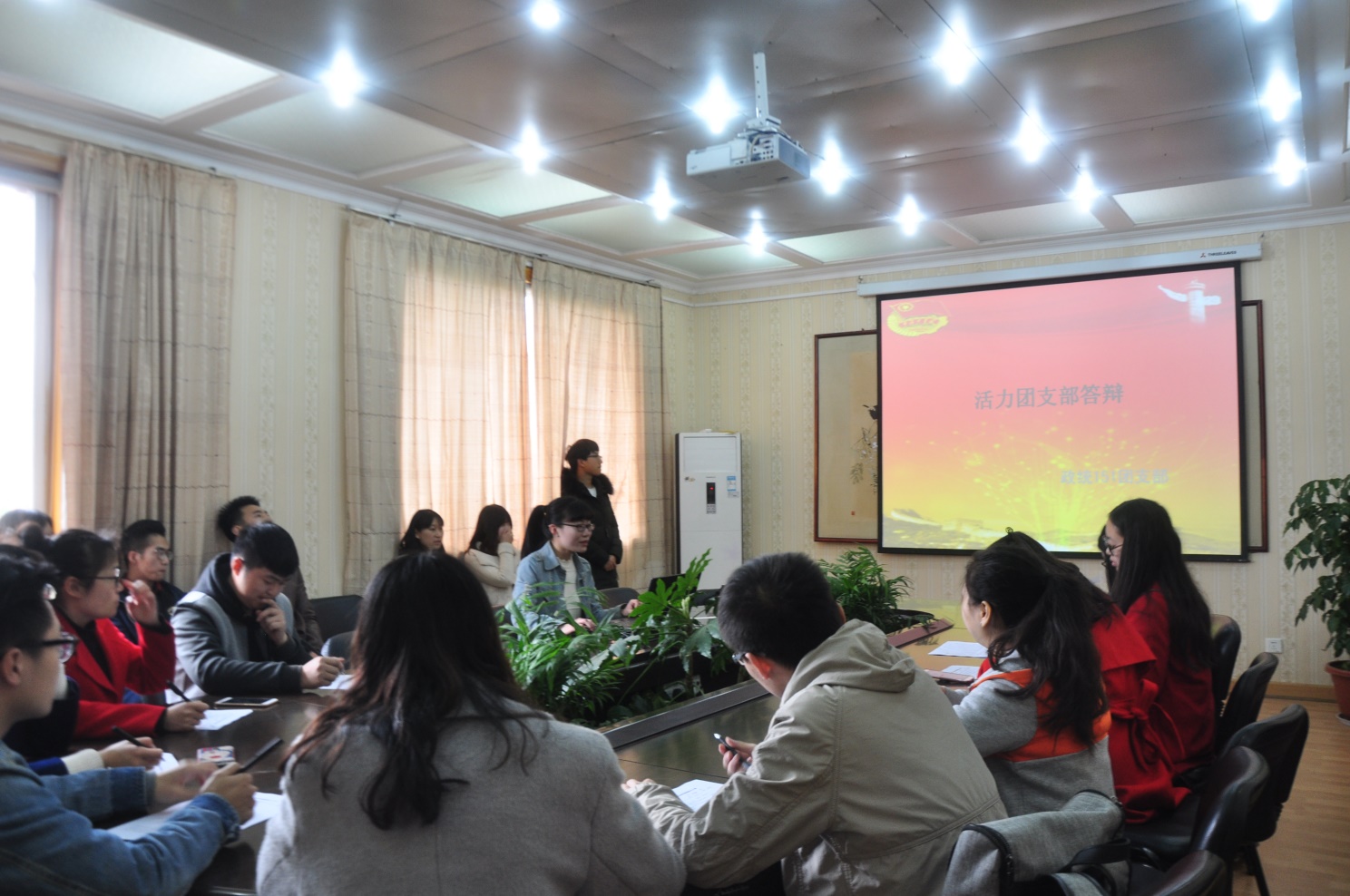 各参赛团支部通过PPT演示和语言叙述相结合的方式进行限时答辩,主要针对本支部的成员组成、工作成果、团日活动等方面进行展示。在答辩中,每位团支书都激情饱满,讲出了自己班级的团支部特色,和对自己团支部未来的清晰计划。评委们根据风采展示和个人表现两个方面进行评分,最终由金保152班获得“活力团支部”荣誉。