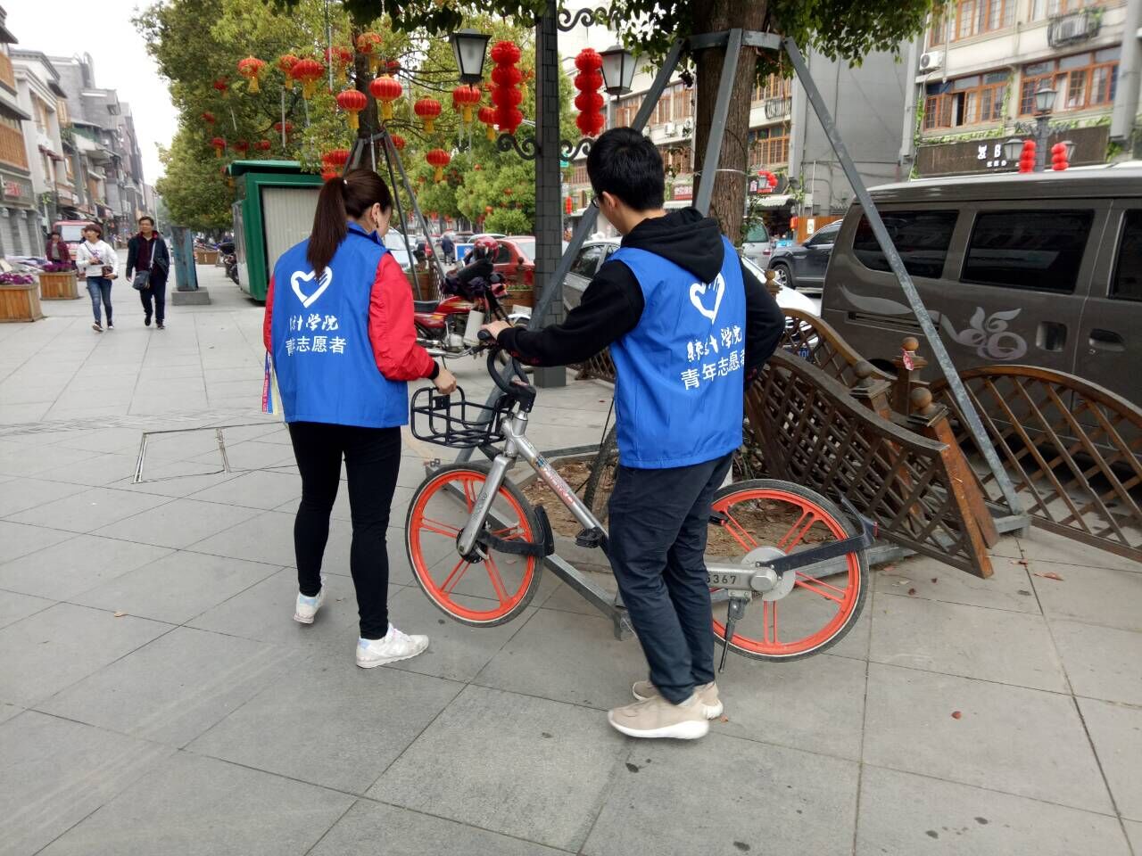 本次活动地点在龙泉洛带古镇,活动的内容是摆放、整理、回收洛带古镇的共享单车。从而让共享单车得到有效、合理的利用。方便人们出行,共建美好生活。