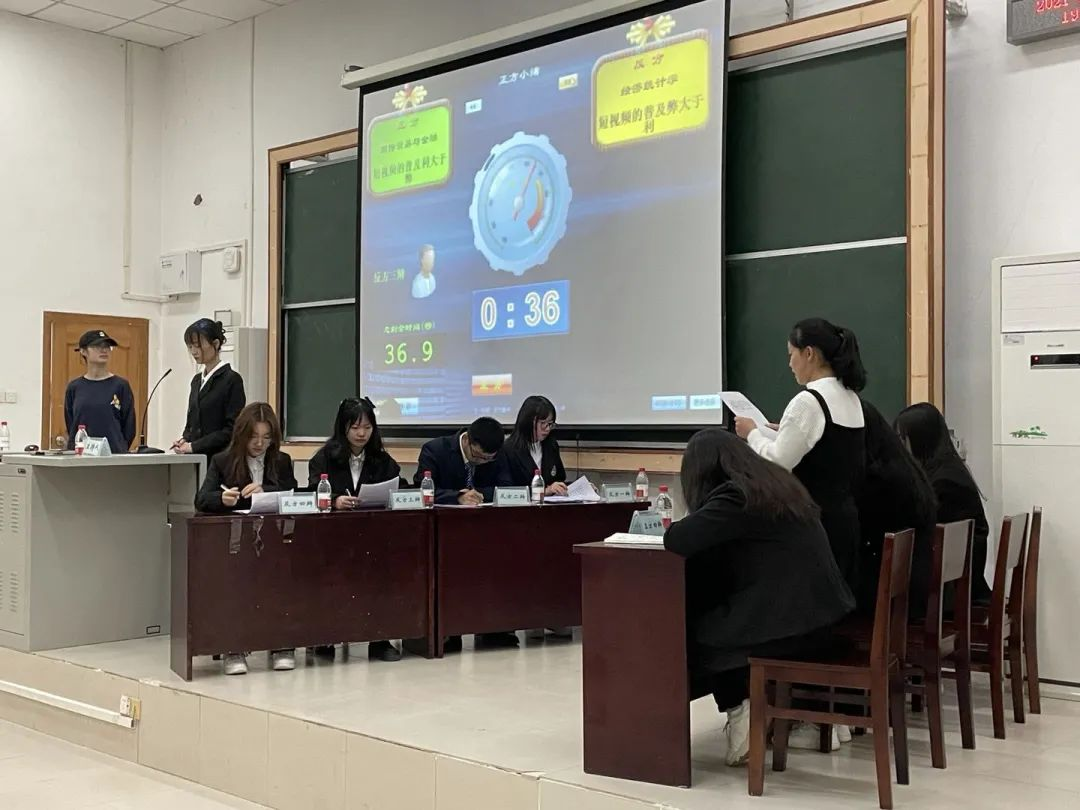此次辩论赛以“短视频的普及是利大于弊还是弊大于利”为辩题,正方是国际经济与贸易专业代表队,反方是经济统计专业代表队。在主持人简短的开场之后,比赛正式开始。