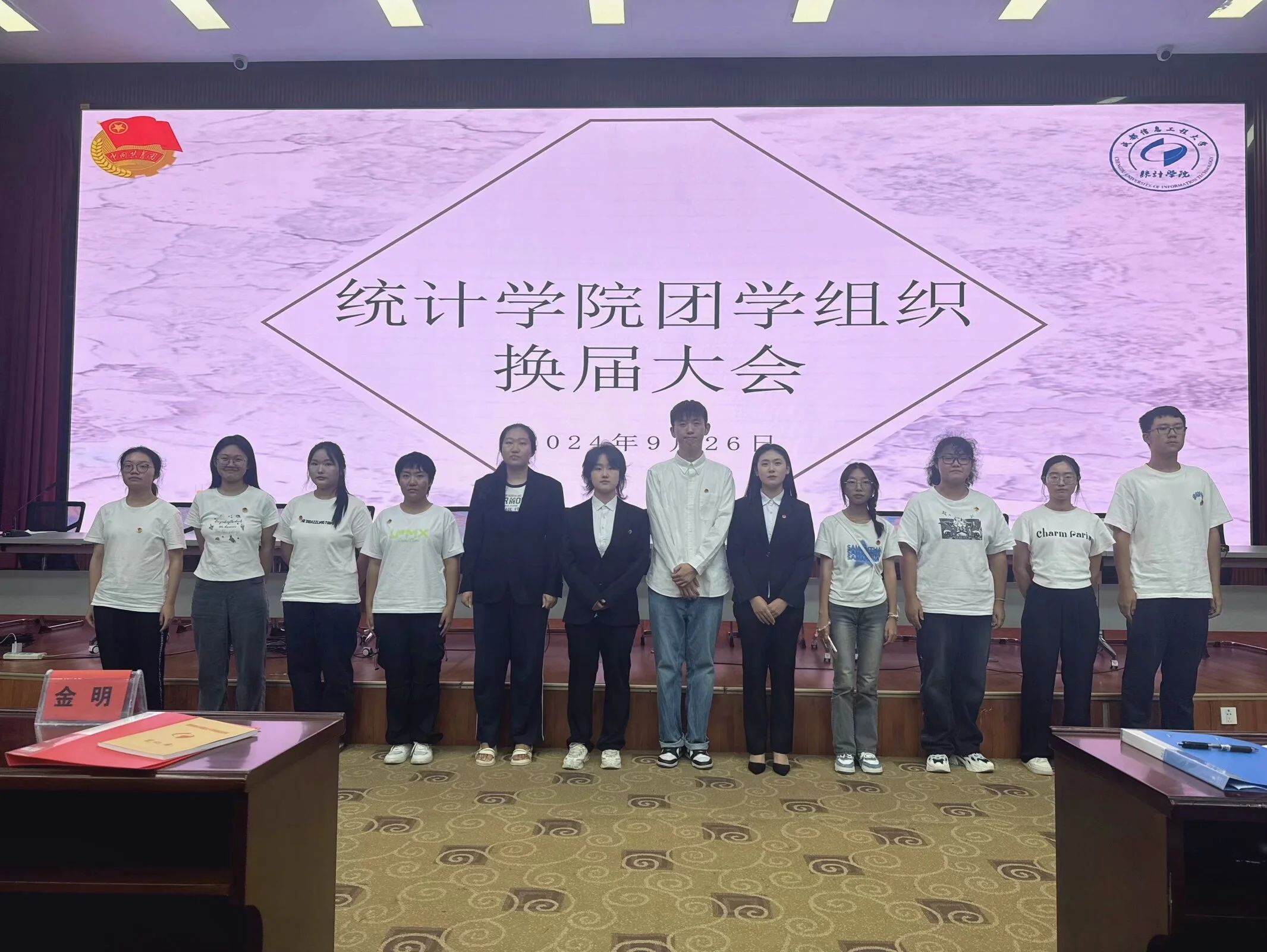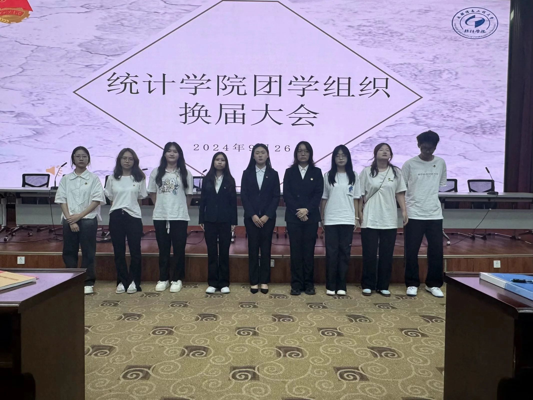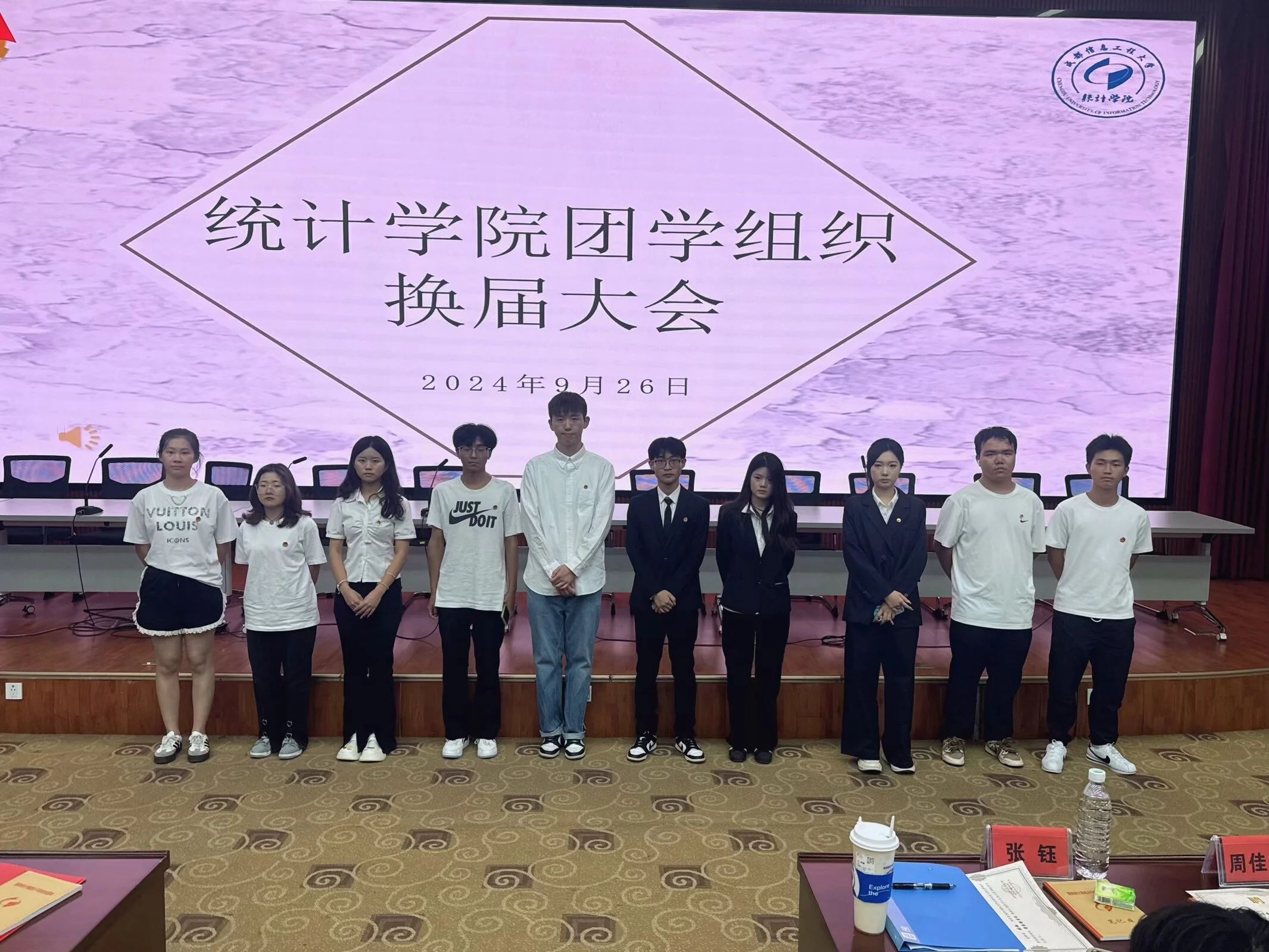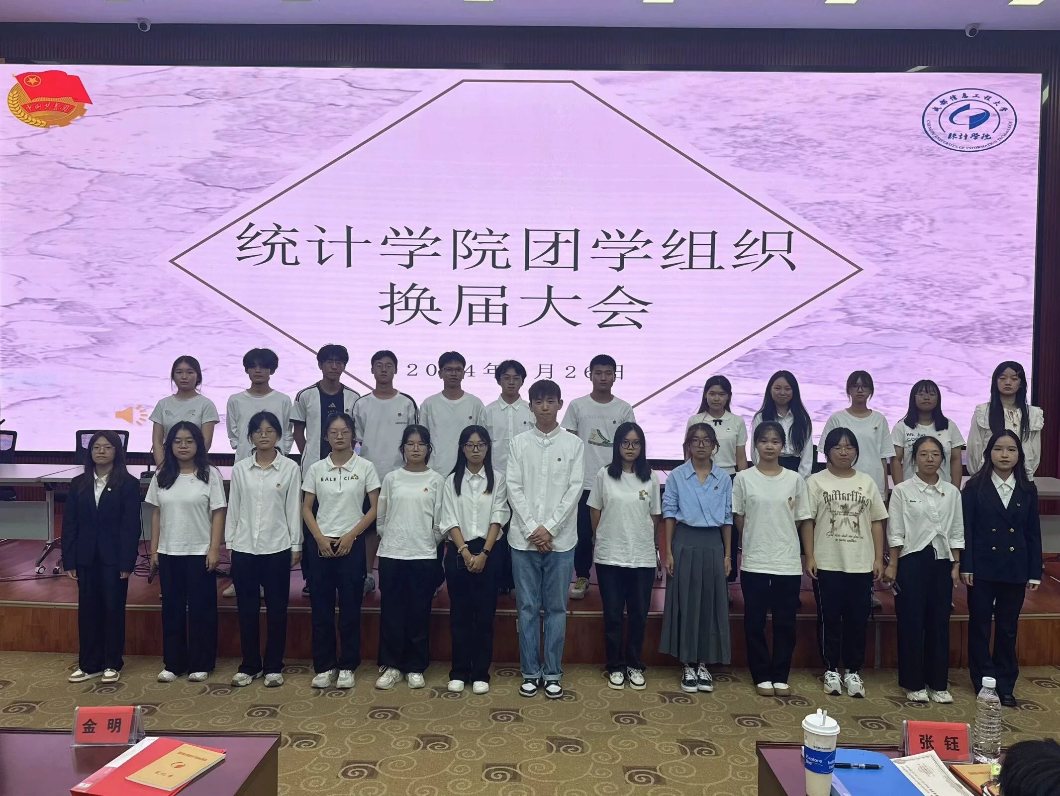 2024年9月30日晚7:30,williamhill中国官方网站团学组织换届大会在williamhill中国官方网站龙泉校区三教学术报告厅召开举行,出席本次会议的有williamhill中国官方网站党委书记金明、团委书记张继成,williamhill中国官方网站辅导员方小双,2023级williamhill中国官方网站团委副书记张钰,2023级williamhill中国官方网站学生会执行主席刘璐,2023级williamhill中国官方网站学生会执行主席周佳莹,2023级青年志愿者协会统院分会会长李鑫及2023级williamhill中国官方网站各部门负责人优秀工作人员社团负责人。