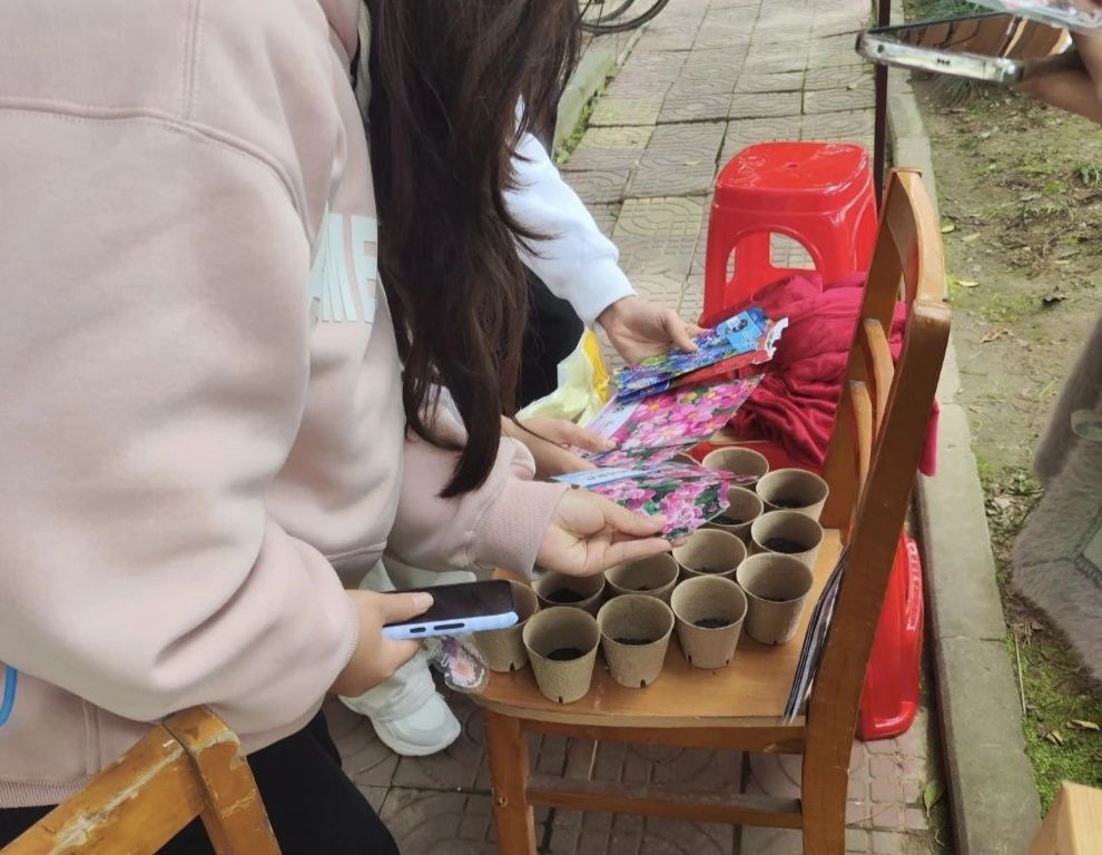 同时,同学们还领取了免费种子和土壤播种希望,看着种子发芽成长,非常有成就感。活动鼓励大家自带空花盆或容器,践行资源重复利用的环保理念,真的太赞啦!