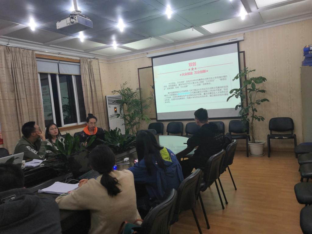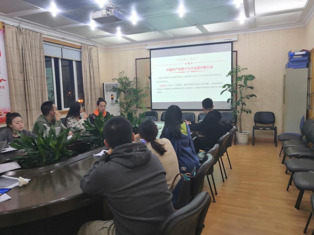 随后预备党员胡钛钧通过“走进十九大”、“了解十九大热词”、“提问”等三个环节和大家重温了十九大。