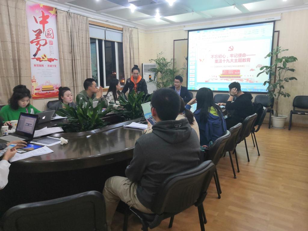 2019年10月30日星期三,williamhill中国官方网站学生一支部在龙泉校区第一行政楼四楼会议室开展“不忘初心、牢记使命”——重温十九大主题教育党课,通过PPT讲解的方式带领大家重温十九大。此次党课由学生一支部书记许瑞老师主持,全体学生党员参加。