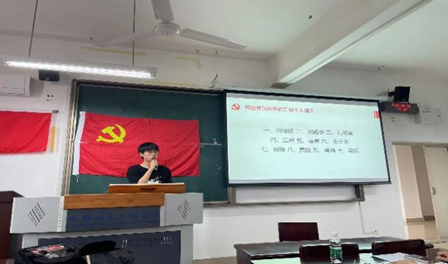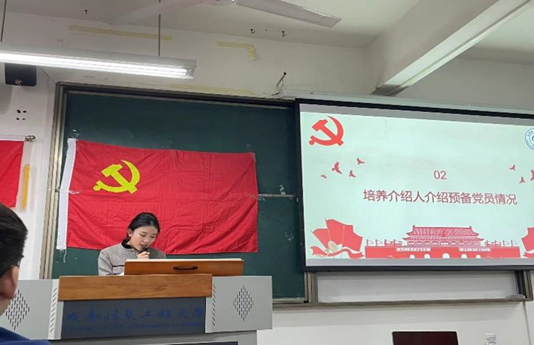 介绍经济统计系学生党支部成员。我支部书记是余心蓬老师,学生正式党员有4名,他们是鲁世滢、谢沛霖、陈小蝶