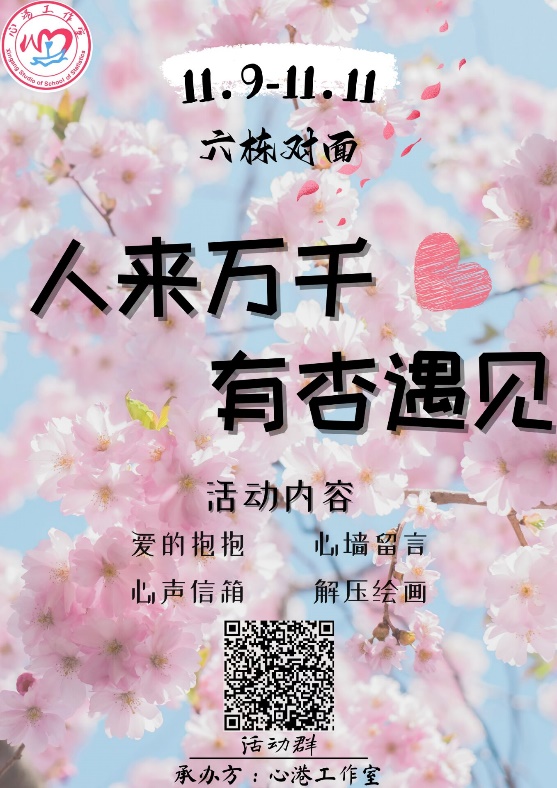 心墙留言:同学们可以将开学以来所遇到的困难、烦心事或者想对自己的大学生活说的话写在便利贴上,然后自行贴在墙上,会有同学们或者学长学姐们为你们解答与留言。